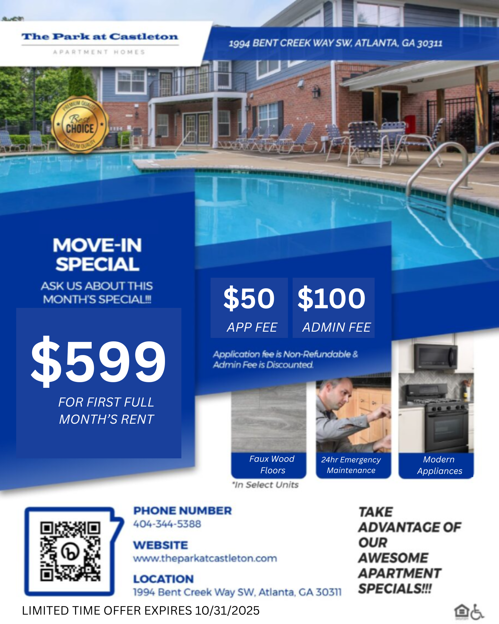 🎃 October Specials Are Here! 🍂 Take advantage of our limited-time Move-In Deals and step into the comfort and convenience you’ve been waiting for. 🏡 First full Month’s Rent is just $599 + Free Ring Doorbell Camera after Move-In Whether you’re starting fresh or upgrading your lifestyle, October is the perfect time to make your move! 📲 Call or visit us today — these fall savings won’t last long! 🍁